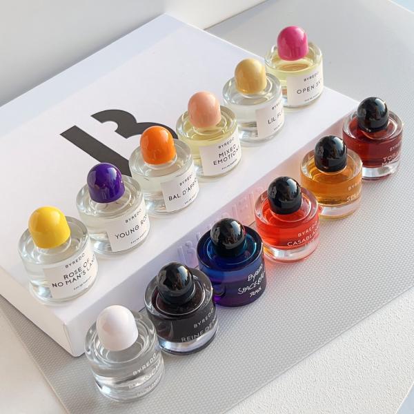 Byredo's 12 Perfume Gift Box - A curated selection of the brand's iconic fragrances, spanning woody, floral, and unisex accords. Each miniature is individually packaged, offering diverse scent exploration for enthusiasts and collectors. The minimalist packaging reflects Byredo's understated luxury and artistic DNA, making it a perfect introduction to the brand's olfactory universe.