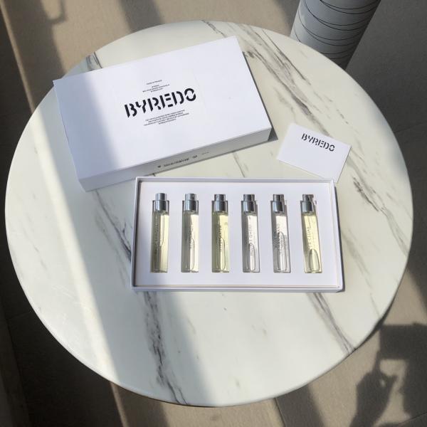 Byredo Perfume Sample Six-Set 12ml Gift Box - A curated collection of six 12ml miniature fragrances showcasing the brand's iconic accords, presented in an elegant gift box that balances daily practicality with premium sophistication