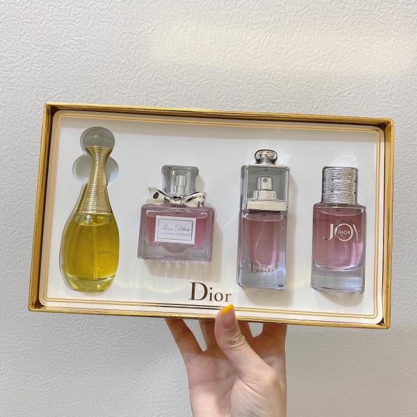 Dior Mini Perfume 4-piece Set Christmas Edition - A curated collection of 4 mini perfumes, blending diverse accords with festive Christmas packaging to capture the elegant charm of the holiday season