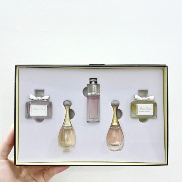 Dior Mini Perfume Gift Set 5 Pieces - A curated collection of 5 mini perfumes, blending diverse accords to offer a rich olfactory experience and showcase Dior's fashionable luxury