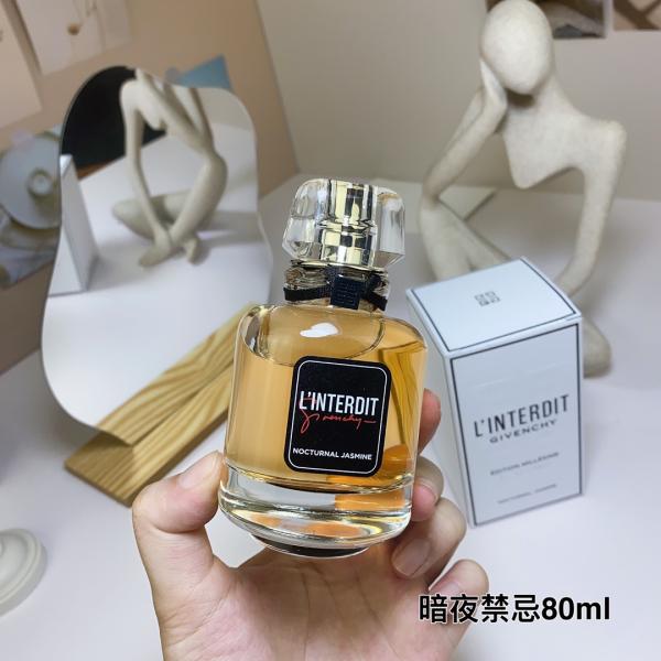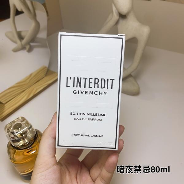 Givenchy L'Interdit Eau de Parfum - Inspired by the nocturnal bloom of jasmine, blending mystery and elegance in a sophisticated accord. The top note opens with fresh citrus and green leaves, the heart reveals a rich jasmine blossom, while the base settles into warm woody and amber tones, capturing the allure of "forbidden charm". The bottle design continues Givenchy's haute couture aesthetic, with dark hues and gold accents, serving as both a fragrance and a fashion statement for urban trendsetters.